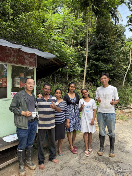 金林红(中)等东谈主在Siriwardana(左)家茶园