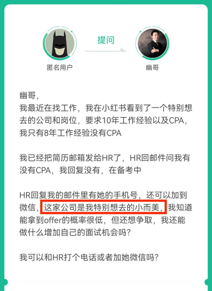 刚刚是行将毕业的硕士学妹,咱们来看个使命后学长的发问。