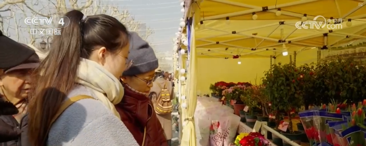 来到上海回答公园,一处打扰的花市眩惑了市民前来选购年宵花草,为家中添上节日的喜气。