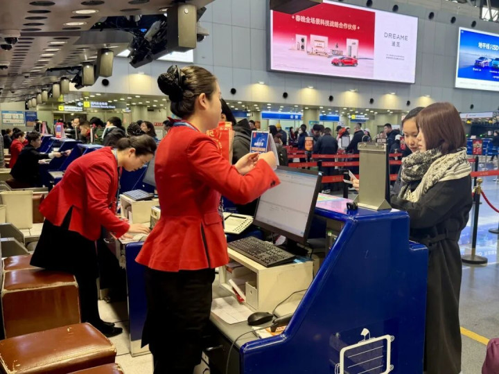 四川航空北京分公司客运办事员任鹏示意,2026年春节假期首日,四川航空干线川渝航路北京到成都、重庆的客座率较高。游客出行岑岭时期在黎明4点至早8点,晚上5点至8点,4点客座率达到88%以上。向暖飞、冰雪游本性隆起,北京到昆明、西双版纳、三亚、哈尔滨客座率将冲破91%以上。本年春运川航有项新福利,乘坐川航经成都天府机场中转的游客,从北京启程前去开罗、墨尔本、马德里、罗马的游客不错“一票到底”,告成在算计打算地取行李。