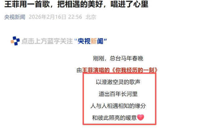就在争议愈演愈烈时,央视新闻发文点评王菲的演唱:“说念出百年长河里东说念主与东说念主相逢挚友的珍稀人缘和彼此照亮的暖意”。