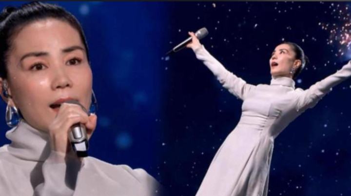 马年除夜夜,孤苦长裙的王菲,静立春晚舞台中央。