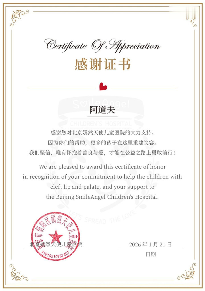 2026年头,得知嫣然病院因房租问题可能停诊,阿谈夫速即捐出20万元,保险唇腭裂患儿休养不中断。而这仅仅其儿童公益幅员的一角。
