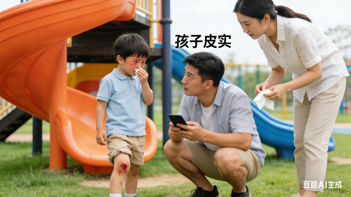 傍边一个姆妈看不下去了,递了张纸巾给孩子。那爸爸这才抬起首,又说了一句:“没事,他皮实。”