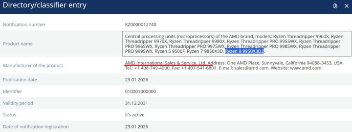 近日,一份来自EEC(Eurasian Economic Commission,欧亚经济定约)的认证文献或然曝光,文献中了了且明确地标注出了“Ryzen 9 9950X3D2”这一料理器型号(请参阅下图),平直结巴了此前的种种臆度。
