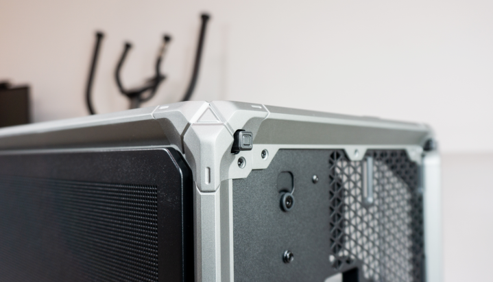 侧板固定这块儿盘算推算挺贴心的,后头有个保障锁扣。这么转移机箱的技术,就毋庸追想玻璃侧板不测掉下来摔坏了,坦然不少。