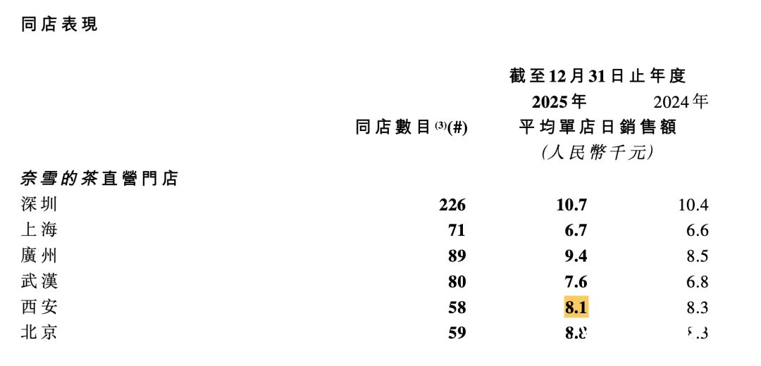 在大幅关店后,奈雪直营店的各项考虑数据有显著改善。2025年,其直营店的平均单店销售额同比高涨了5.48%至约7700元;单店日均订单量同比高涨了15.71%至313单;每笔订单平均销售金额同比下跌了8.61%至24.4元。