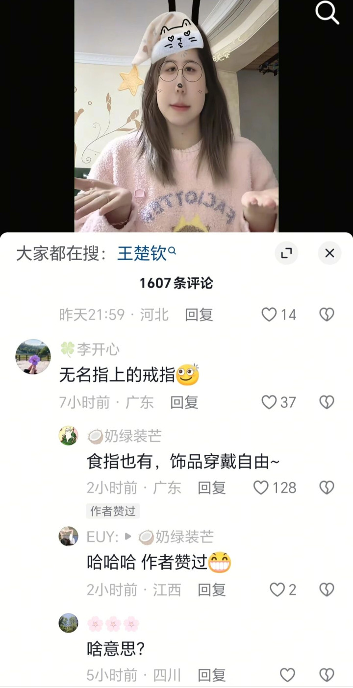 之后有网友回复了这条批驳:食指也有,饰品衣服目田。