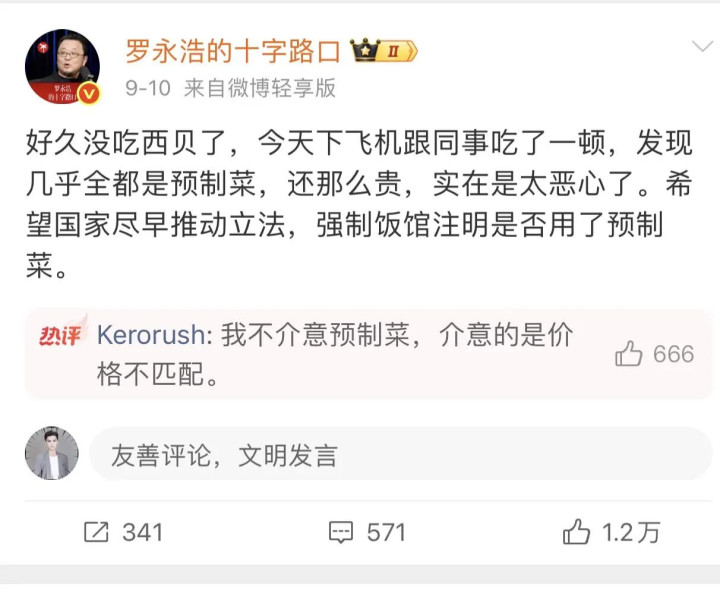 在西贝的公论事件中,贾国龙将公关的重点放在了挑起事由的罗永浩身上,认为本轮风云主要来自于同为企业家的罗永浩的公开品评,但围不雅的大师却王人了了罗永浩仅仅一个烽火的,西贝这场火之是以简略被罗永浩烧起来,中枢原因在于预制菜,这个话题的背后,其实隐敝着是公众对食物安全的惦记。