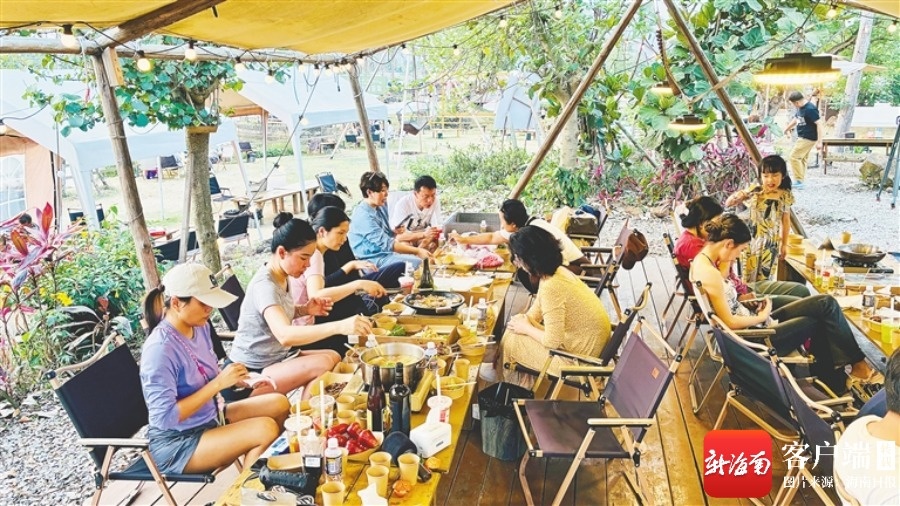 4月4日,明朗小长假首日,海口目田大陆营地迎来强大市民搭客。绿茵草坪上,一顶顶帐篷杂沓有致,搭客围坐野餐,尽享椰城春日暖阳。海南日报全媒体记者 张茂 摄